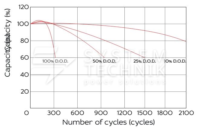 - Рекомендуемое напряжение заряда в циклическом режиме для 12В батареи: 13,5В-14,1В при 25ºС;