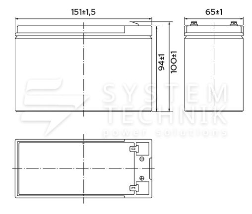 - Срок хранения без подзаряда: 6 мес. при 25°C;