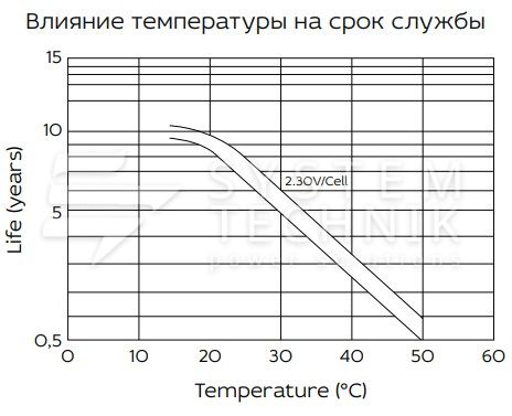 - Срок хранения без подзаряда: 6 мес. при 25°C;