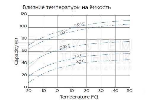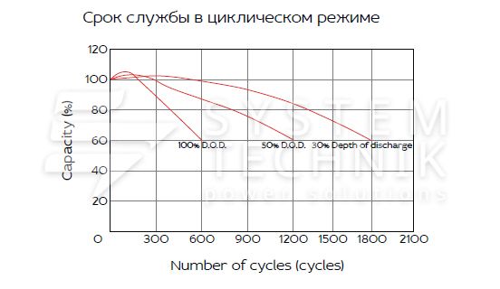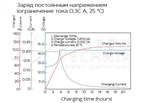 - Срок хранения без подзаряда: 6 мес. при 25°C;