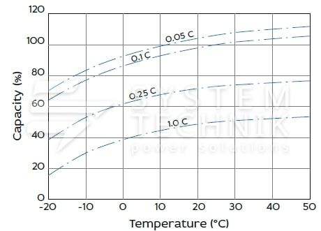- Срок хранения без подзаряда: 6 мес. при 25°C;