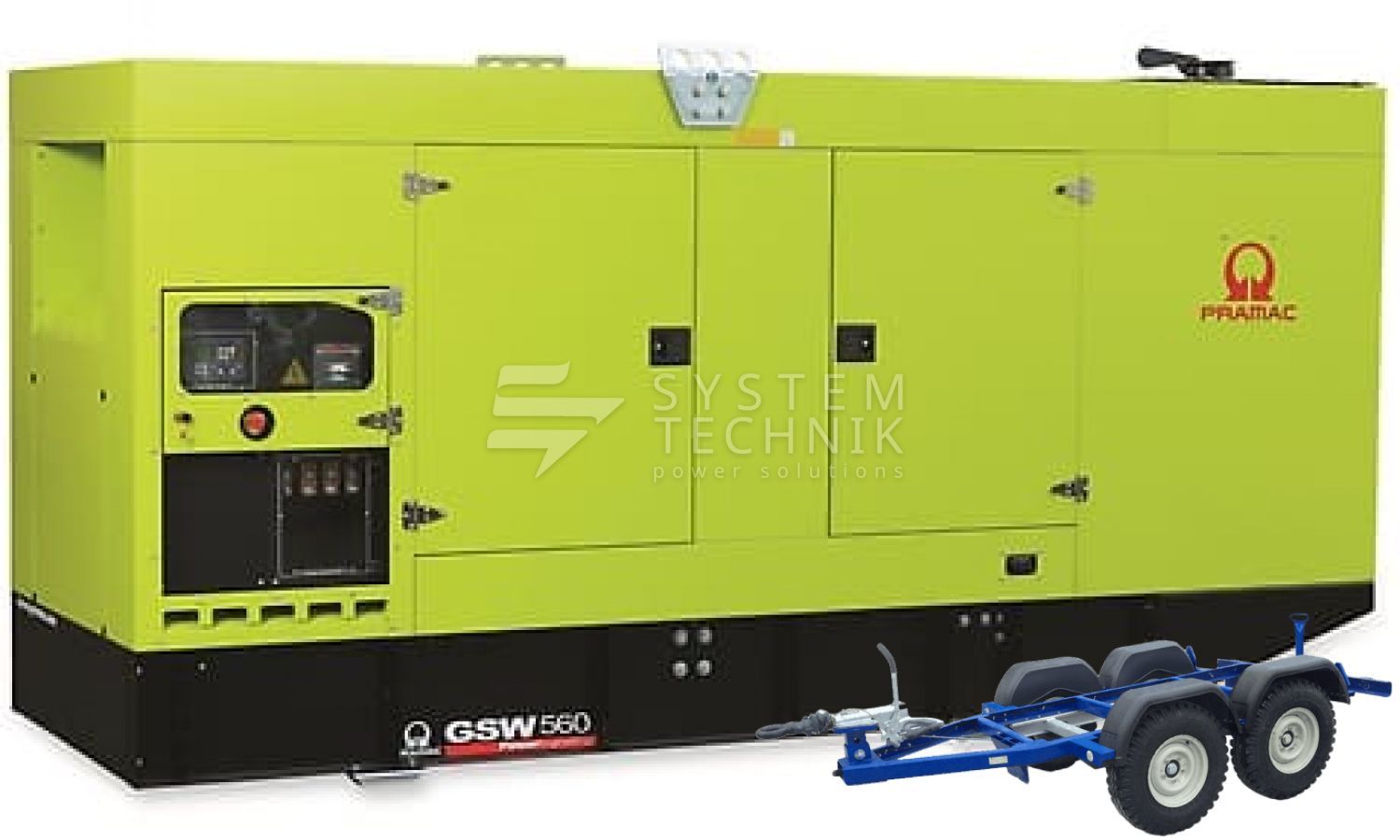 - Дизельный генератор Pramac GSW 560 V 480V В кожухе на прицепе