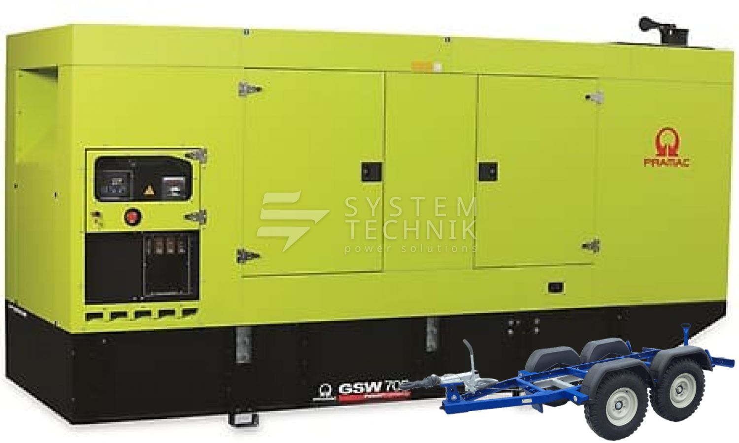 - Дизельный генератор Pramac GSW 705 V 400V В кожухе на прицепе